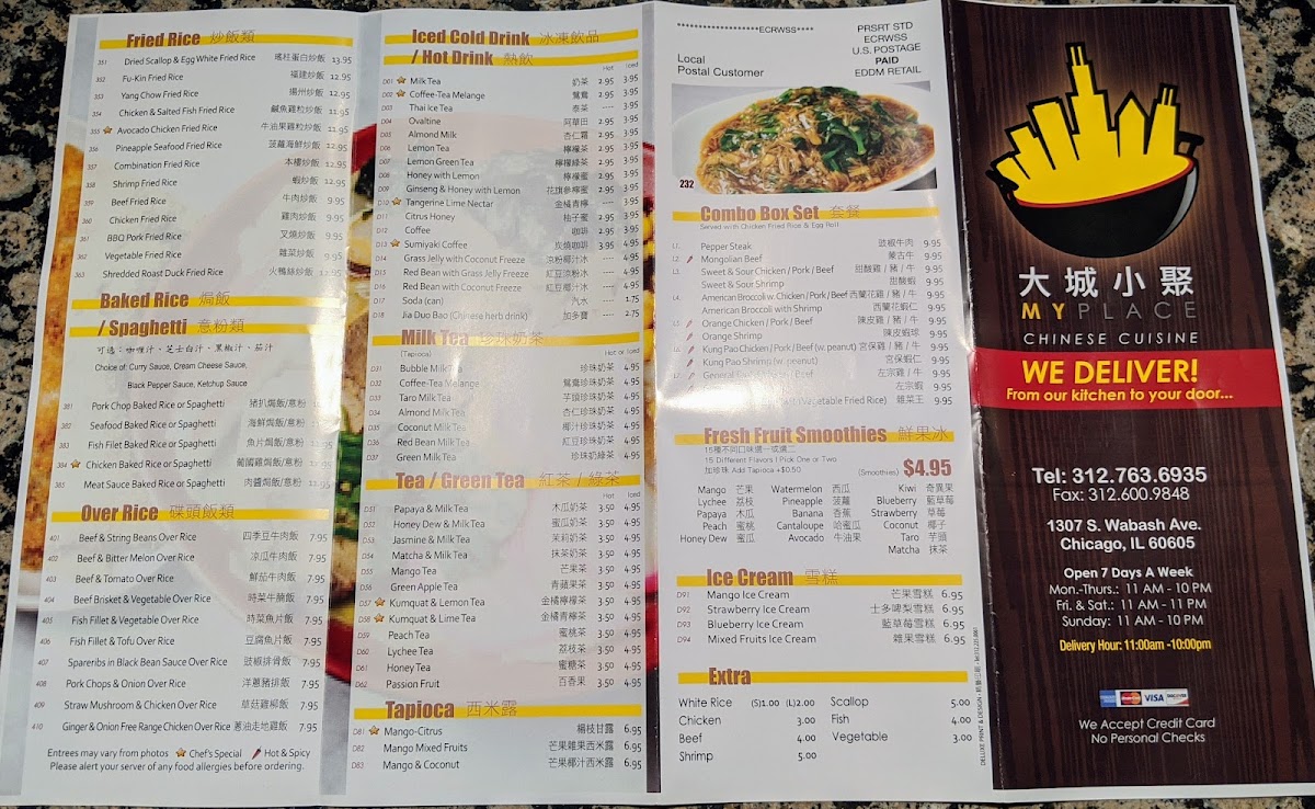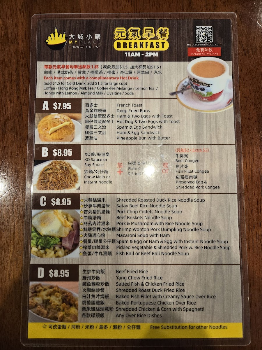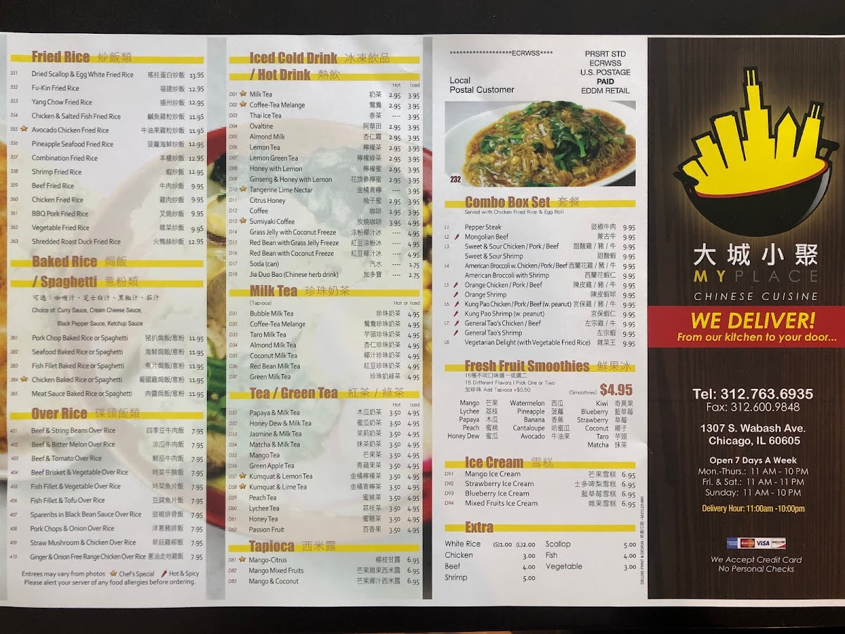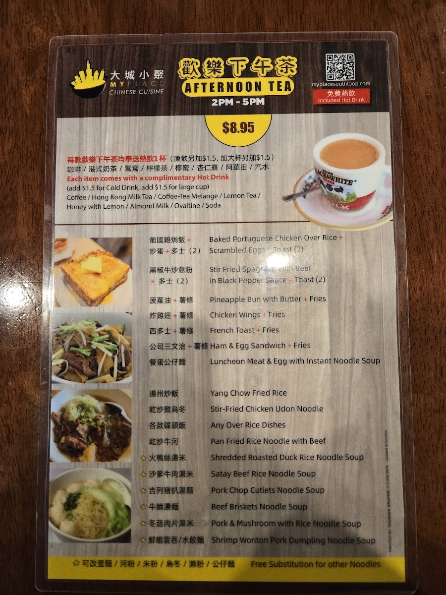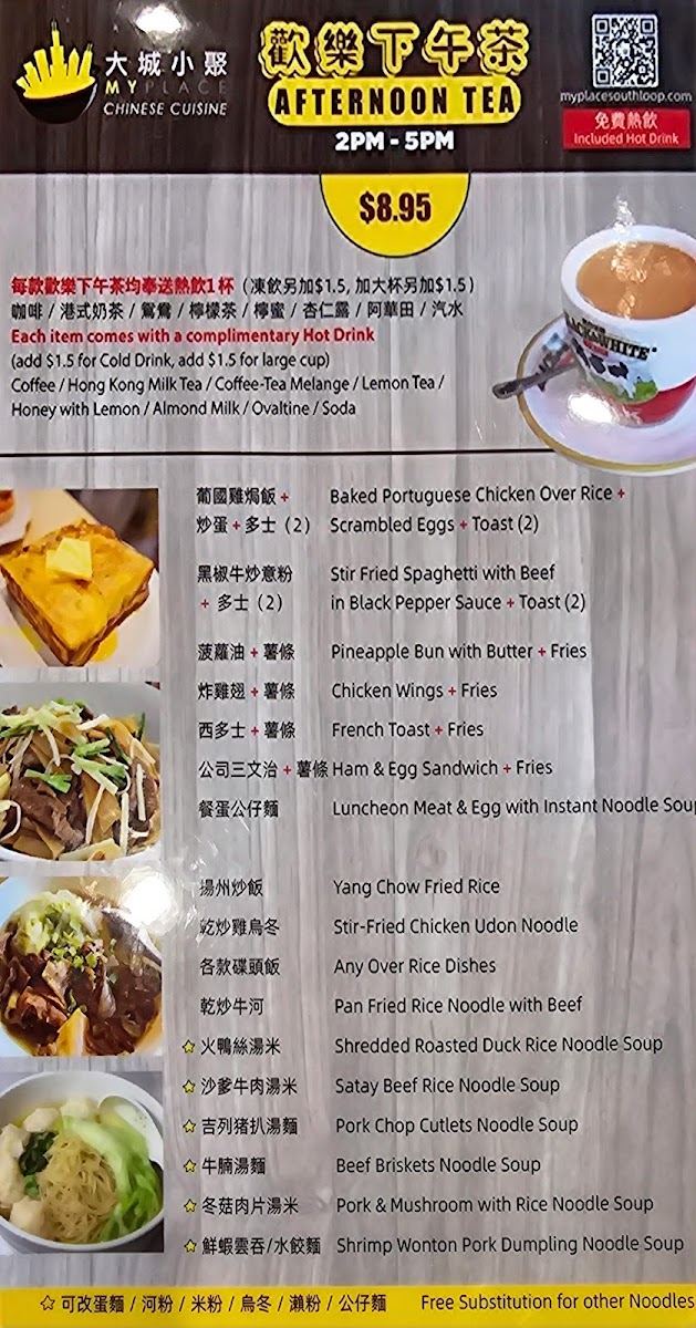 Welcome to My Place South Loop Restaurant, located at 1906 S State St, Chicago, where vibrant flavors and comforting dishes come together. This Cantonese gem offers a diverse menu, featuring everything from creamy congee options like the succulent Seafood Congee to the spicy and tender vegetable stir fries. Standout dishes include sizzling chicken in black pepper sauce and broccoli chicken, both praised for their generous portions and rich flavors. The restaurant caters to dietary preferences with options like Japanese Tofu with Pea Tips and Salt and Pepper Eggplant, ensuring everyone finds something delightful. Diners appreciate the reasonable prices, especially during afternoon tea time, which offers incredible value. Be sure to check out the BYOB policy for a personalized dining experience. Expectations are high for future visits as customers return to explore more culinary surprises.
